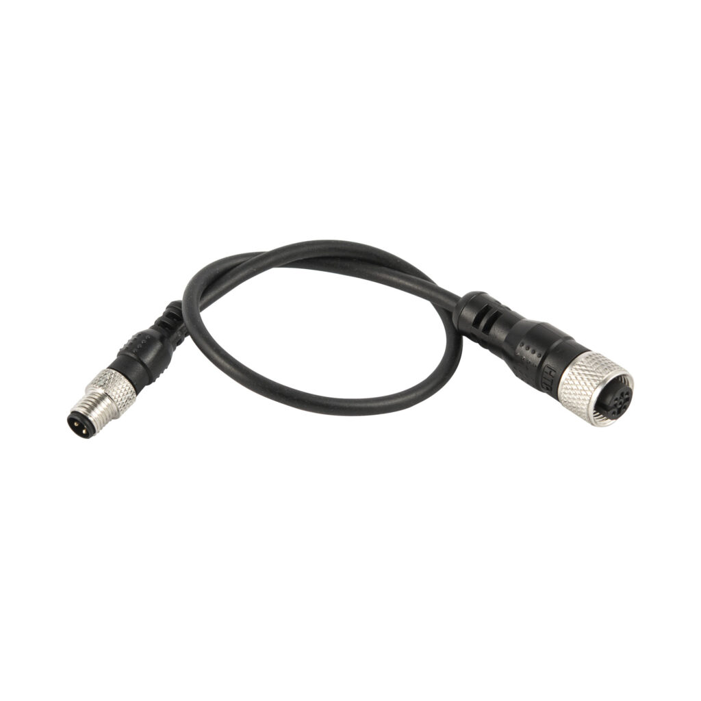 Anschlusskabel für digitale Ein-/Ausgänge, M8 Stecker gerade 3-polig / M8 Buchse gerade 5-polig, Länge 0,2 m.