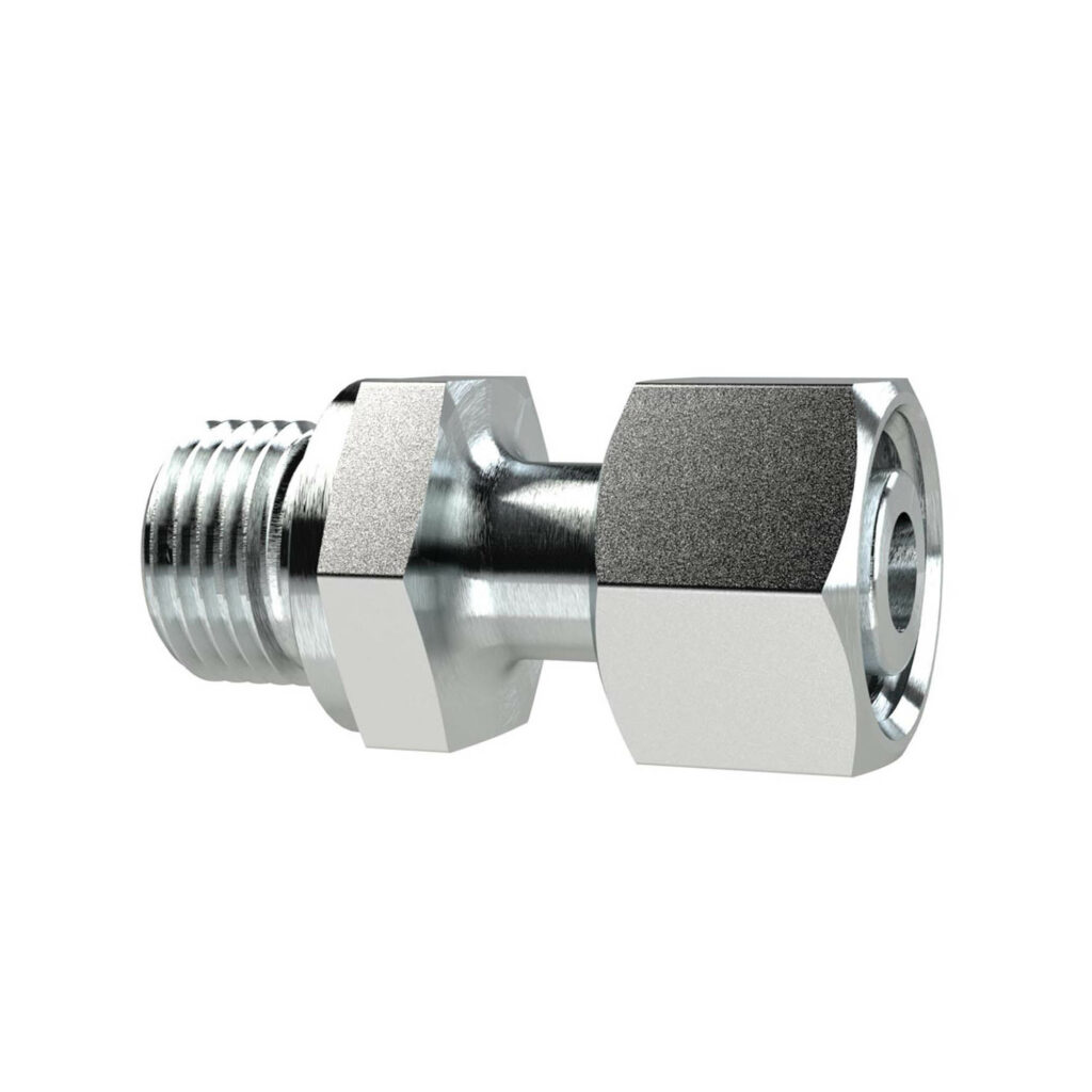 Einstellbare gerade Einschraubverschraubung, G 1/8 a., Rohr-Außen-Ø 6 mm, PN 315, SW1 14, SW2 14, Stahl verzinkt.