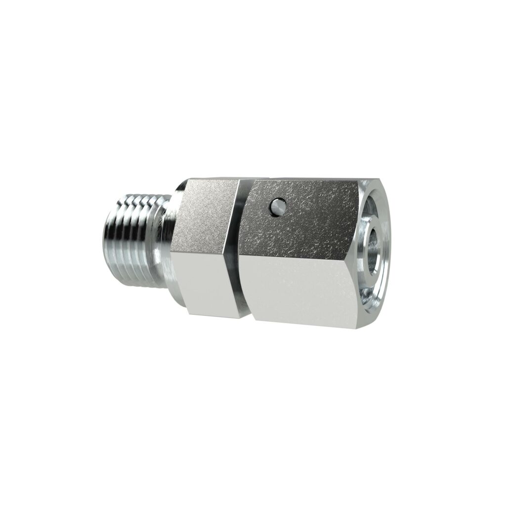 Einstellbare gerade Einschraubverschraubung, Dichtkegel, M10x1,0 a., Rohr-Außen-Ø 6 mm, PN 315, SW1 14, SW2 14, Stahl verzinkt.