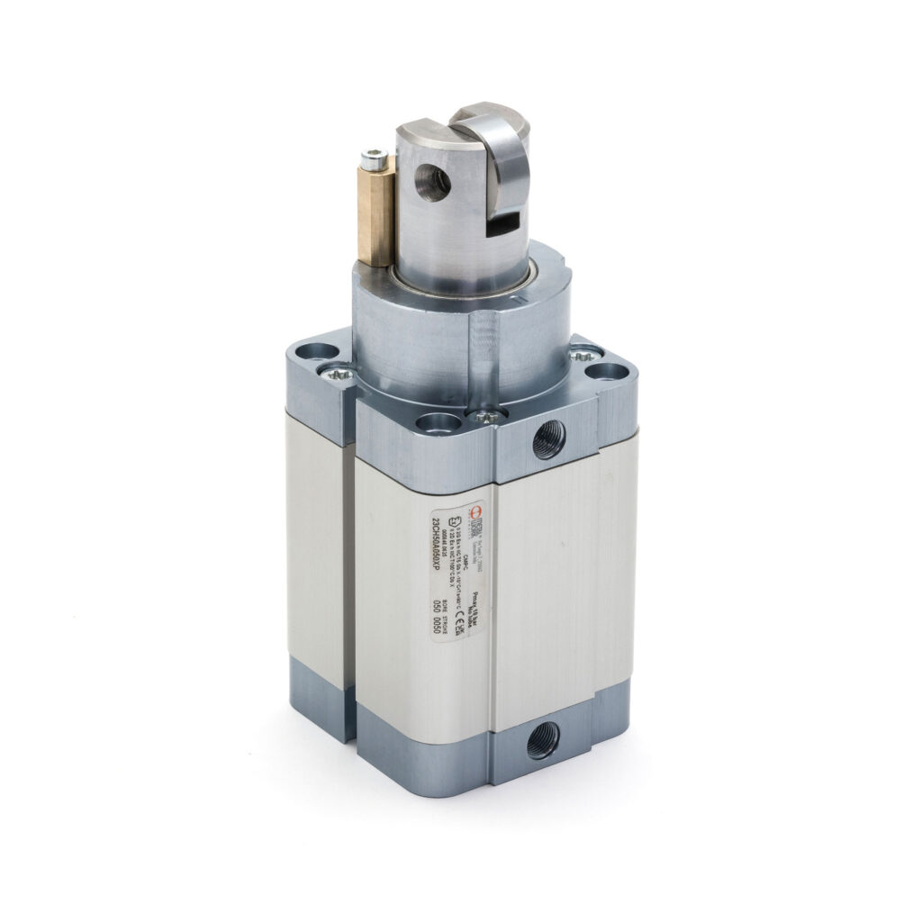 Kompakter Stopperzylinder, Rollen-Ausführung, Magnet, Kolben-Ø 80, Hub 40, ISO 15552, G 1/8, p = max. 10 bar, T = -10 bis 80 °C. Kompakte Stopperzylinder dienen der Unterbrechung der Bewegung von Werkstücken oder Spannvorrichtungen. Vorteile: – Ausgerüstet mit oder ohne Magnet. – Einfachwirkend mit ausgefahrener, extrastarker Kolbenstange. – Kann gleichfalls als doppeltwirkender Zylinder mit Federunterstützung verwendet werden. – Befestigungsmaße nach ISO 15552 für Ø 32, Ø 50, Ø 80 und Standard NFE 49-004-1 und 2 (Frankreich) = (UNITOP). – In die jeweiligen Zylindernuten können versenkbare Magnetsensoren eingesetzt werden.