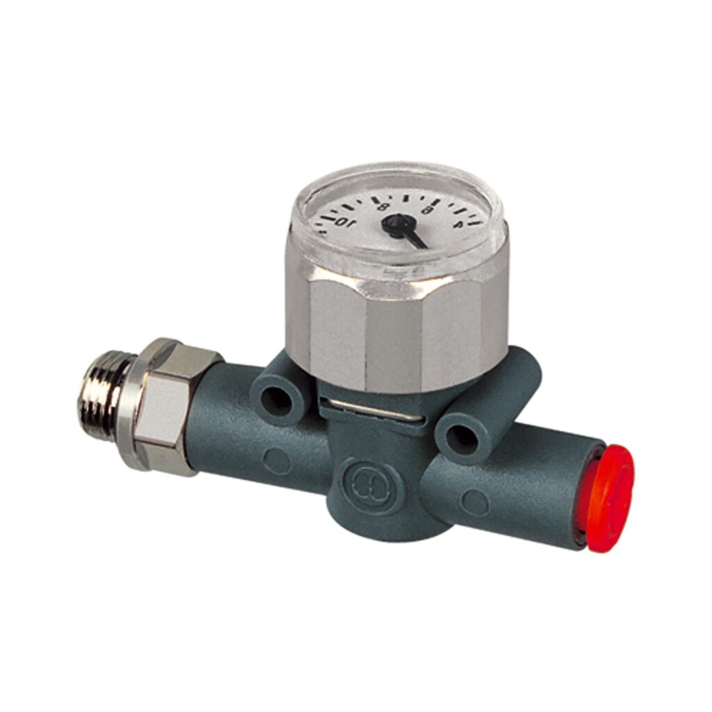 Manometer »lineonline«, Gewinde (Eingang) – Schlauch (Ausgang), M5, für Schlauch-Ø 4 mm, Betriebsdruck max. 12 bar. Trotz der kleinen Abmessung des Manometers ist eine hohe Messgenauigkeit gewährleistet.