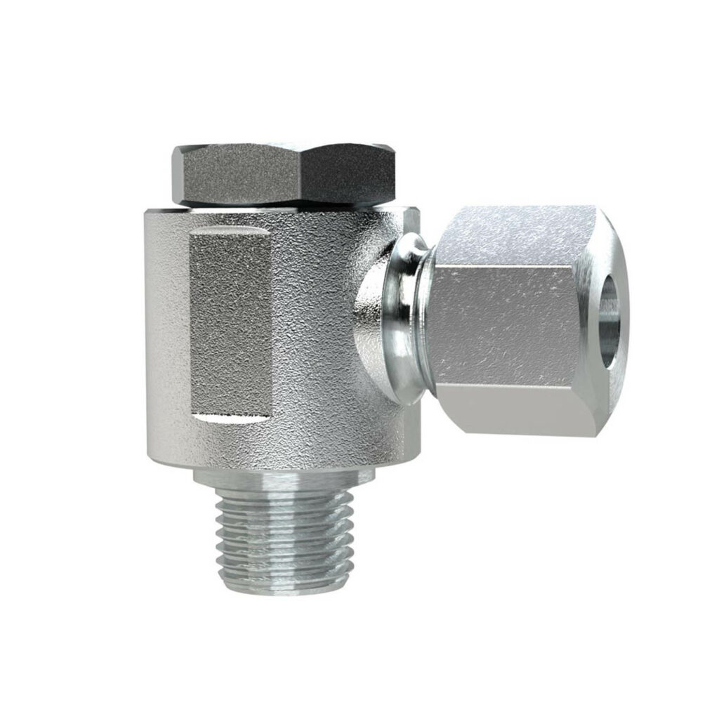 Schwenkbare Winkel-Verschraubung, M12x1,5 a., Rohr-Außen-Ø 6 mm, SW1 17, SW2 19, Betriebsdruck max. 400 bar, Stahl verzinkt. Schwenkbare Winkel-Verschraubung, Außengewinde metrisch mit O-Ring, schwere Ausführung
