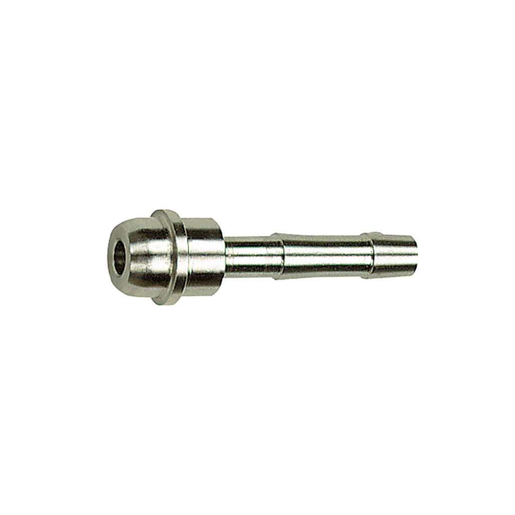Schlauchtülle m. Kugelnippel f. LW 6, für Überwurfmutter G 1/8, ES 1.4571, Arbeitsdruck max. 60 bar, Betriebstemp. max. 150 °C.